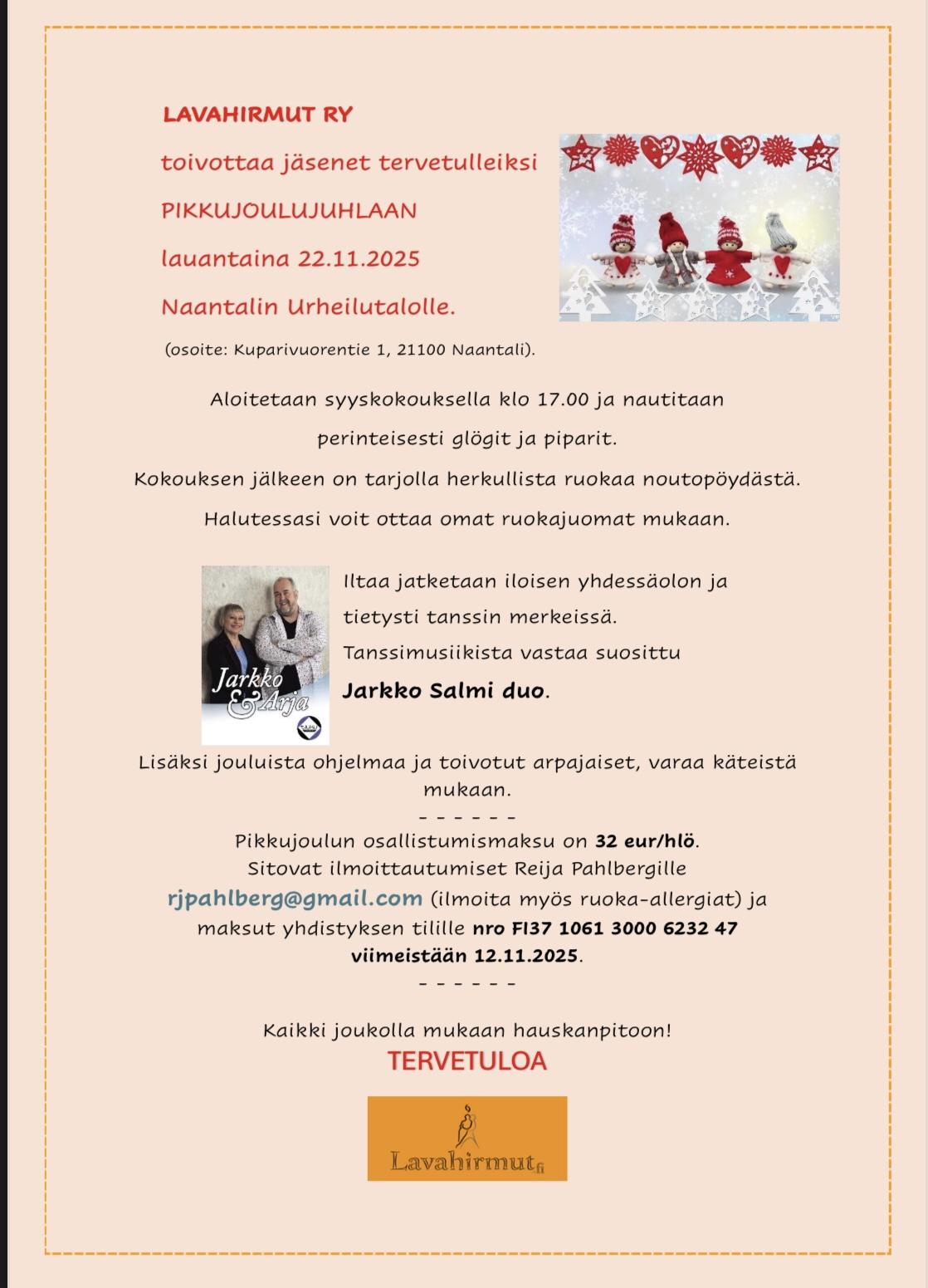 PIDETÄÄN LAUANTAINA 22.11.2025 KLO 17.00